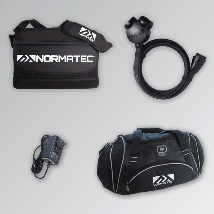 Extra attachments for legs, arms, or hips. Soft and hard carry cases. Replacement parts. And of course, NormaTec swag to rock during your workout.